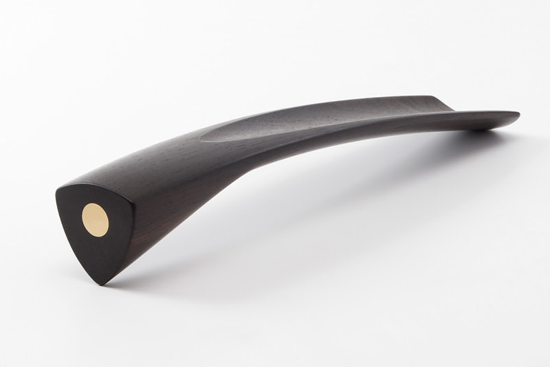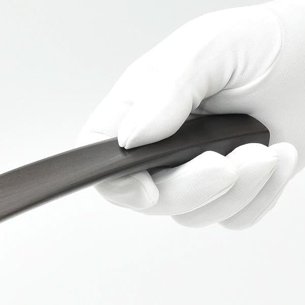 三角の土台はこの靴べらの一番の見せどころ! 三角形の側面に柔らかな丸みを与えて、曲げた指の腹が均等に当たるようにしています。また三角の稜線は入念な手作業にてキリッとした直線に仕上げて、土台全体のデザインを引き締めています。