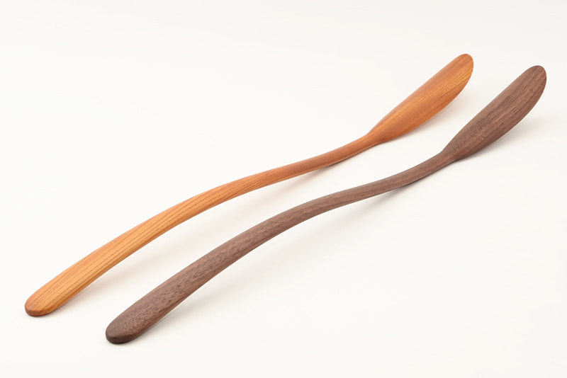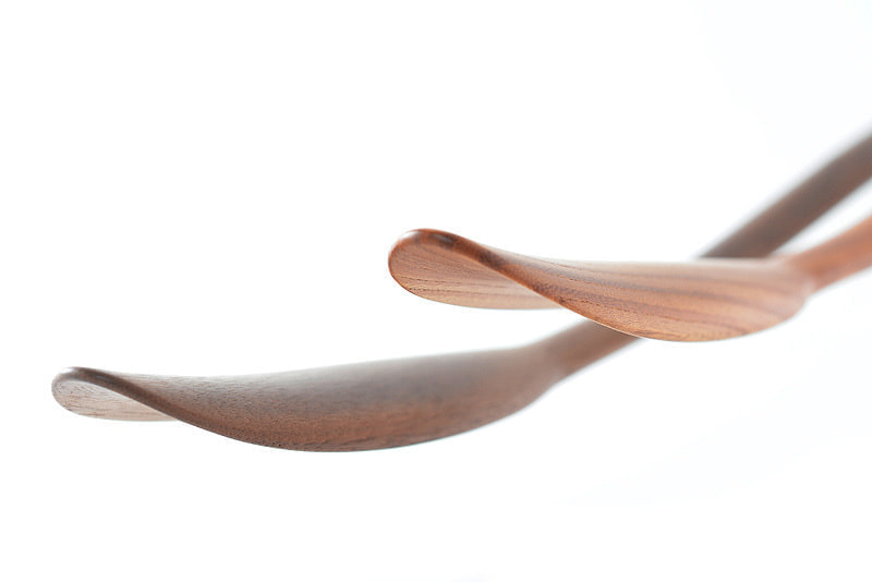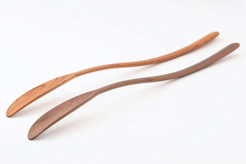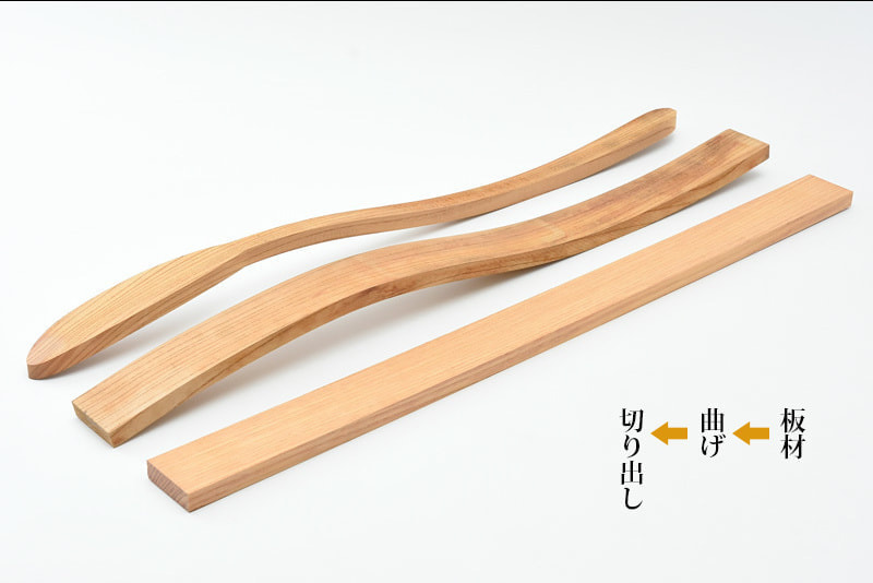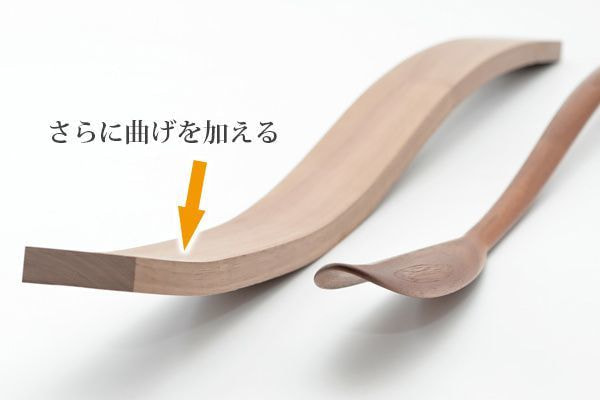 反りの部分にも「曲げ木」によるカーブを適用。ヘラの先端まで木材の線維を完全に通しました。強度を落とさずヘラを薄くすることが可能になりました。