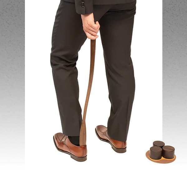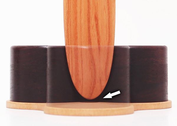 さらに、スタンドべースにはヘラの先端と同じカーブのディンプルを施し、不注意で靴べらをスタンドに強く押し込んでしまっても、ヘラ先がつぶれてしまうのを防ぎます。