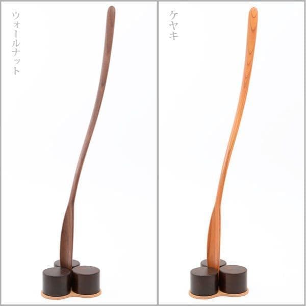 ラインナップは靴べら本体「ウォールナット」と「ケヤキ」の二種。価格は税込み¥19,800(税込み、送料込み)