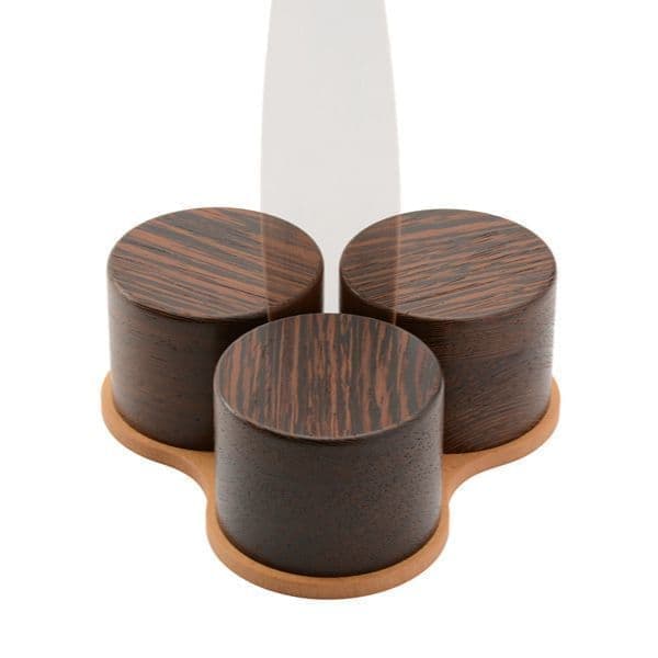 スタンド円柱は、木目が美しい「ウェンジ材」。